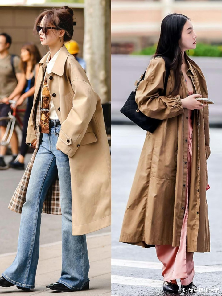 入秋之后早晚天气比较凉,那么这时候我们就需要挑选轻薄舒适的外套了,比如像是秋季常见的风衣,不仅能够遮肉显瘦同时还能保暖。其次我们也不需要选择太过于宽松的风衣去硬凹造型,只需要选择合身和简约的款式,这样不仅舒适显高同时还优雅得体。