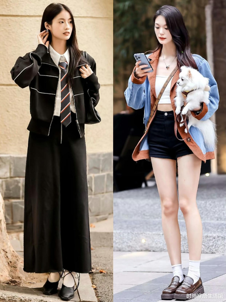 秋天穿外套的时候其实是小个子最担心的,选择太短的长度会暴露身材比例,太长的长度又会压低个子,那么对于小个子女生来说秋天穿外套该如何增高显瘦呢?其实我们可以借助上短下长的搭配法则,比如像是选择短款外套,下身搭配高腰的裤子或者裙子,或者是选择将上衣塞进裤腰,能够有效的划分身材比例,完美的打造出三七分身材。